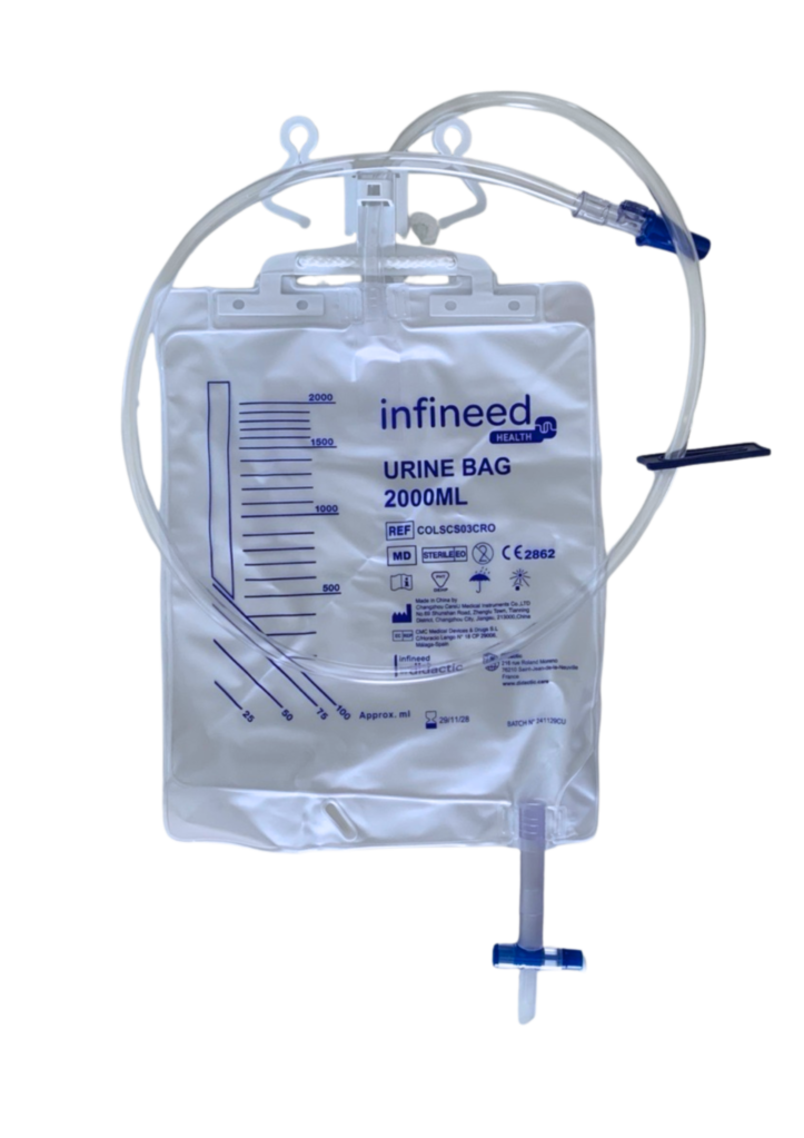 The sterile 2-liter closed-system urine collector with secure collection site ensures bladder drainage in the event of urinary retention, and enables preoperative evacuatory catheterization. Its connection fits all urinary catheters, eliminating any risk of incompatibility.